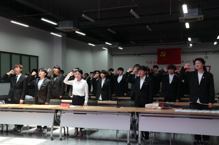 仪式在庄严的国歌声中拉开帷幕。kaiyun开云官方网站团委李艺老师宣读了新团员名单,70名建工学子经过培养考察,正式加入中国共产主义青年团。随后,优秀团员代表为新团员佩戴团徽。闪耀的团徽承载着共青团的光荣与使命,新团员们佩戴上团徽,标志着他们从此肩负起共青团员的责任,在学习和生活中发挥模范带头作用。在鲜艳的团旗下,全体新团员庄严宣誓。誓言铿锵有力,响彻全场,表达了新团员们对共青团组织的无限向往和为共产主义事业奋斗的坚定决心。