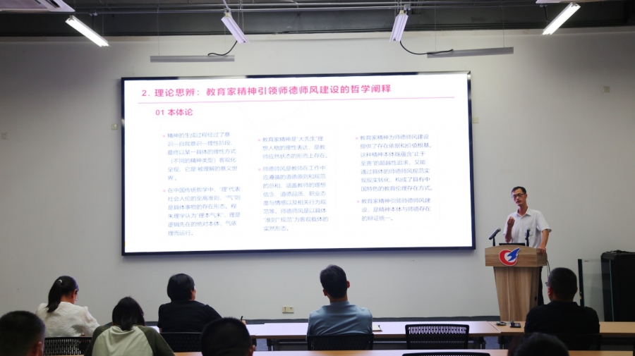 曹圣军在报告中指出,教育家精神作为教师队伍建设的价值图谱,承载着民族复兴工程的精神元代码,闪耀着“为党育人、为国育才”“躬耕教坛、强国有我”的思想光芒,明确了胸怀“两个大局”、心系教育的“国之大者”的鲜明政治导向,为师德师风建设坚持正确政治方向提供了根本遵循,对于促进广大教师躬耕教坛守初心、以德施教担使命、笃行不怠育桃李,具有十分重要的思想引领意义和精神激励作用。