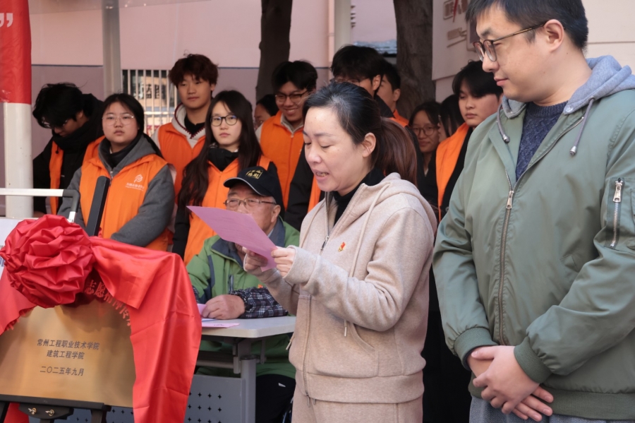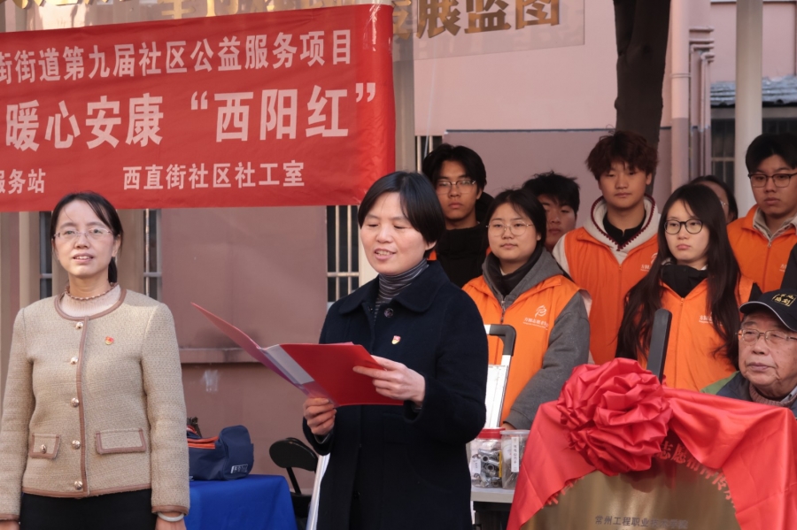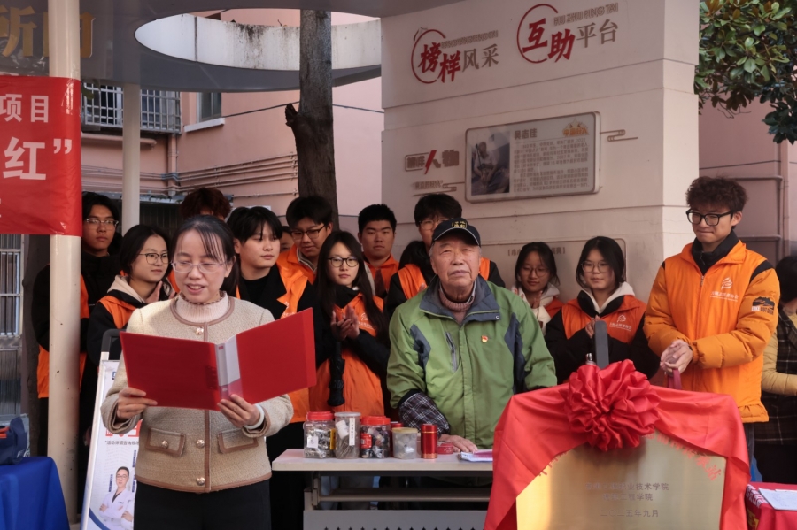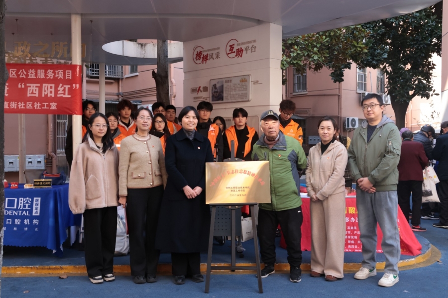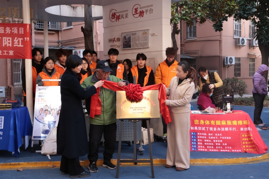 为深入学习身边榜样,推动志愿服务常态化开展,11月26日上午,由kaiyun开云官方网站与常州西直街社区联合打造的“中国好人吴志佳志愿精神传承站”挂牌仪式在西直街社区“连心亭”隆重举行。“中国好人”吴志佳、西直街社区党委书记沈丹、kaiyun开云官方网站党总支书记徐永红、副书记张爱芳及师生志愿者代表、社区居民参加活动,共同见证校社共建志愿新阵地的诞生。