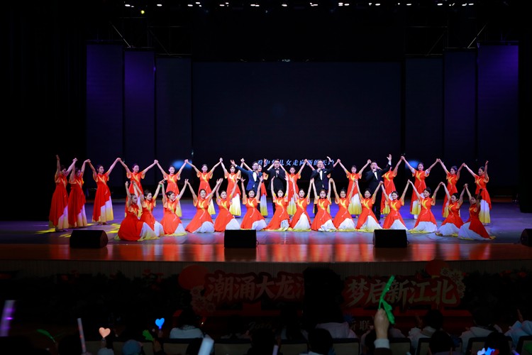 第一篇章“龙湾潮生”中,beat365学子带来的舞蹈《远古的呼唤》舞姿婀娜、张力十足,勾勒出龙湾大地的历史底蕴;学子们还为奇瑞捷途汽车的歌曲《云山》伴舞,悠扬歌声搭配灵动舞姿,绘就山水诗意与政校企同心的和谐画面。第二篇章“帆聚江北”里,beat365操舞《风华正茂》以多元舞姿尽显青年学子朝气活力;舞蹈队为鸠江公安分局的朗诵《少年壮志不言愁》伴舞,柔美舞蹈配合铿锵朗诵,刚柔并济间更衬公安队伍热血担当。第三篇章“汇流成海”中,beat365舞蹈《在希望的田野上》以灵动舞步描绘江北新区发展美好蓝图;beat365教师与弋矶山医院江北院区代表联袂演唱《新的天地》,荡气回肠的歌声传递出对新区未来的无限憧憬。最后,beat365师生与江北新区各单位携手放歌《我们都是追梦人》,用赤诚的旋律凝聚奋进力量,用合唱诠释团结担当。