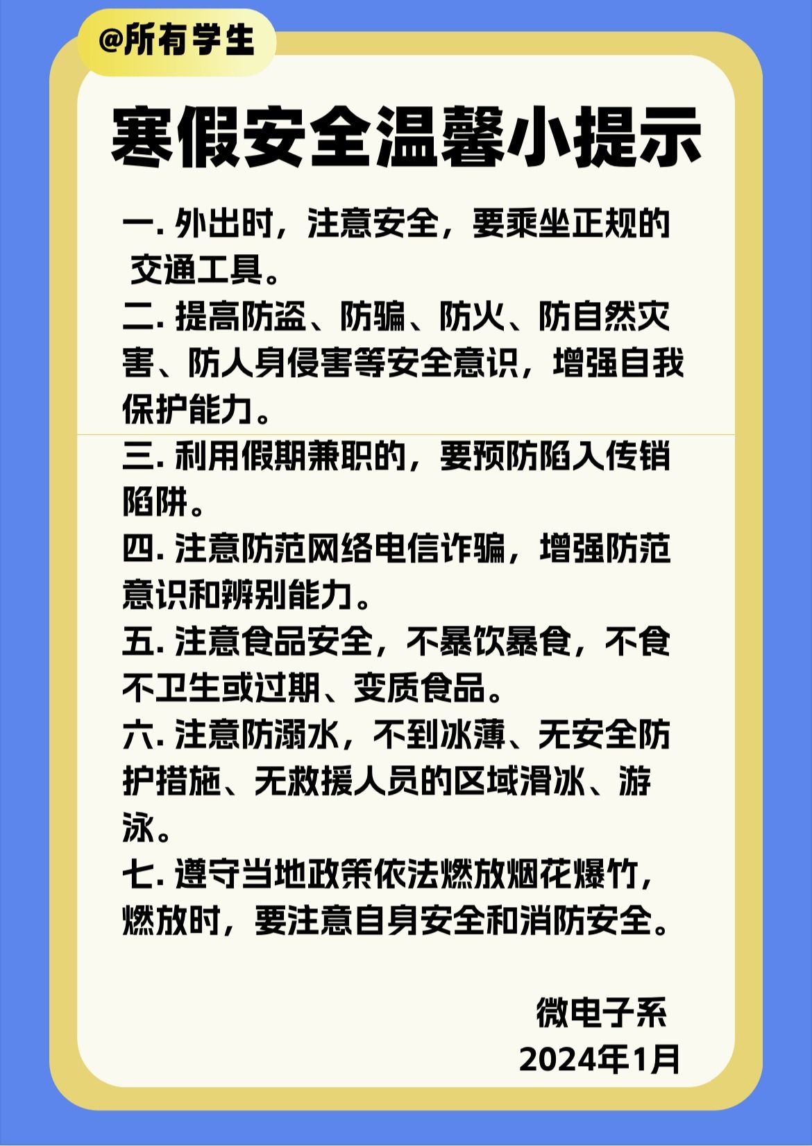 寒假安全温馨小提示