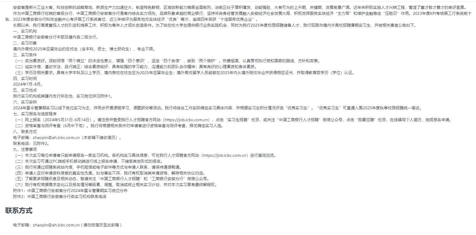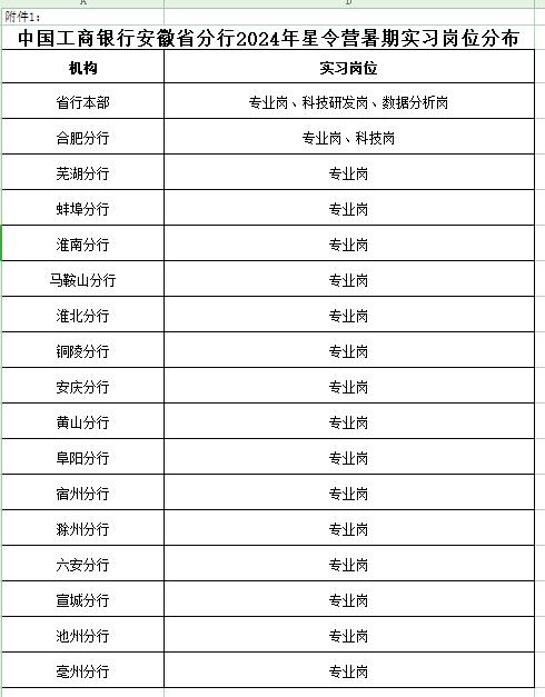 > 中国工商银行安徽省分行2024年星令营暑期实习公告