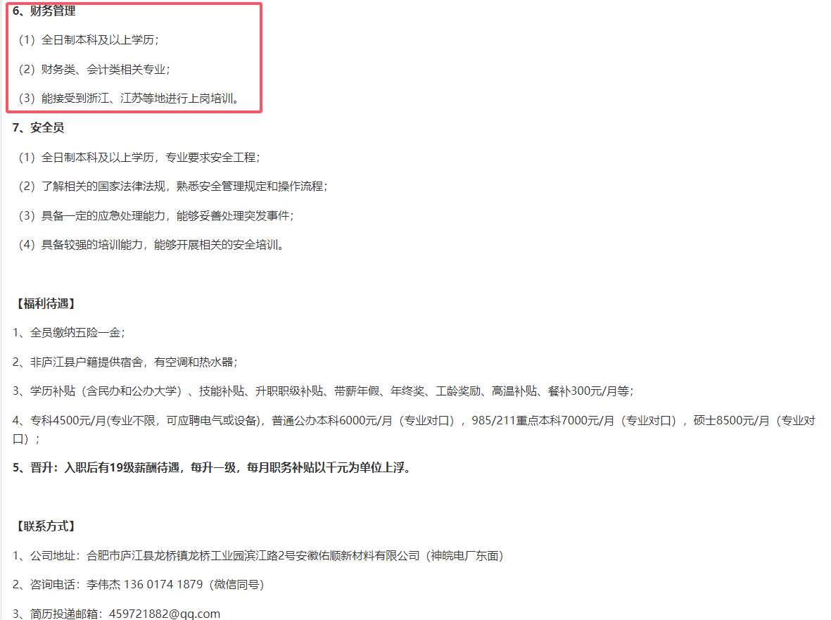 > 2024年安徽佑顺新材料有限公司招聘简章