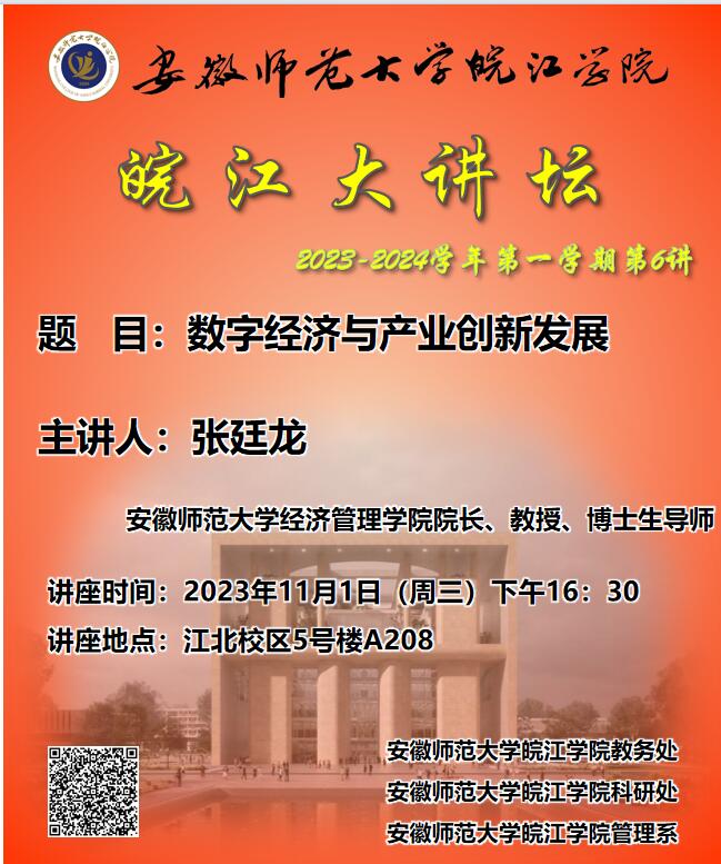 皖江大讲坛2023-2024学年第一学期第6讲预告
