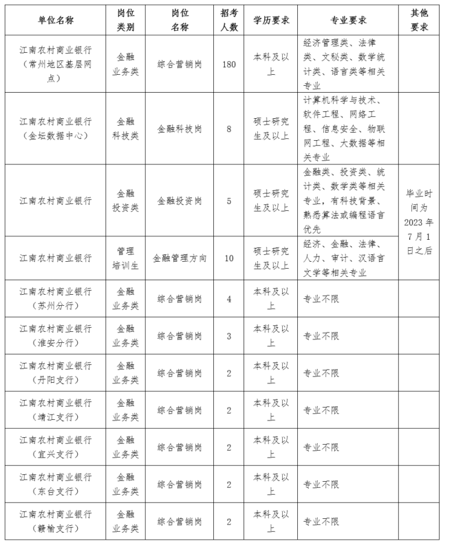 未来有你,一路同行!江南农村商业银行2024年度春季校园招聘正式开启,220个岗位虚位以待,现诚邀国内外高等院校优秀青年学子加盟,期待与您同发展,共成长!
