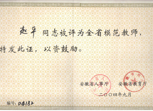 > 赵平省级模范教师