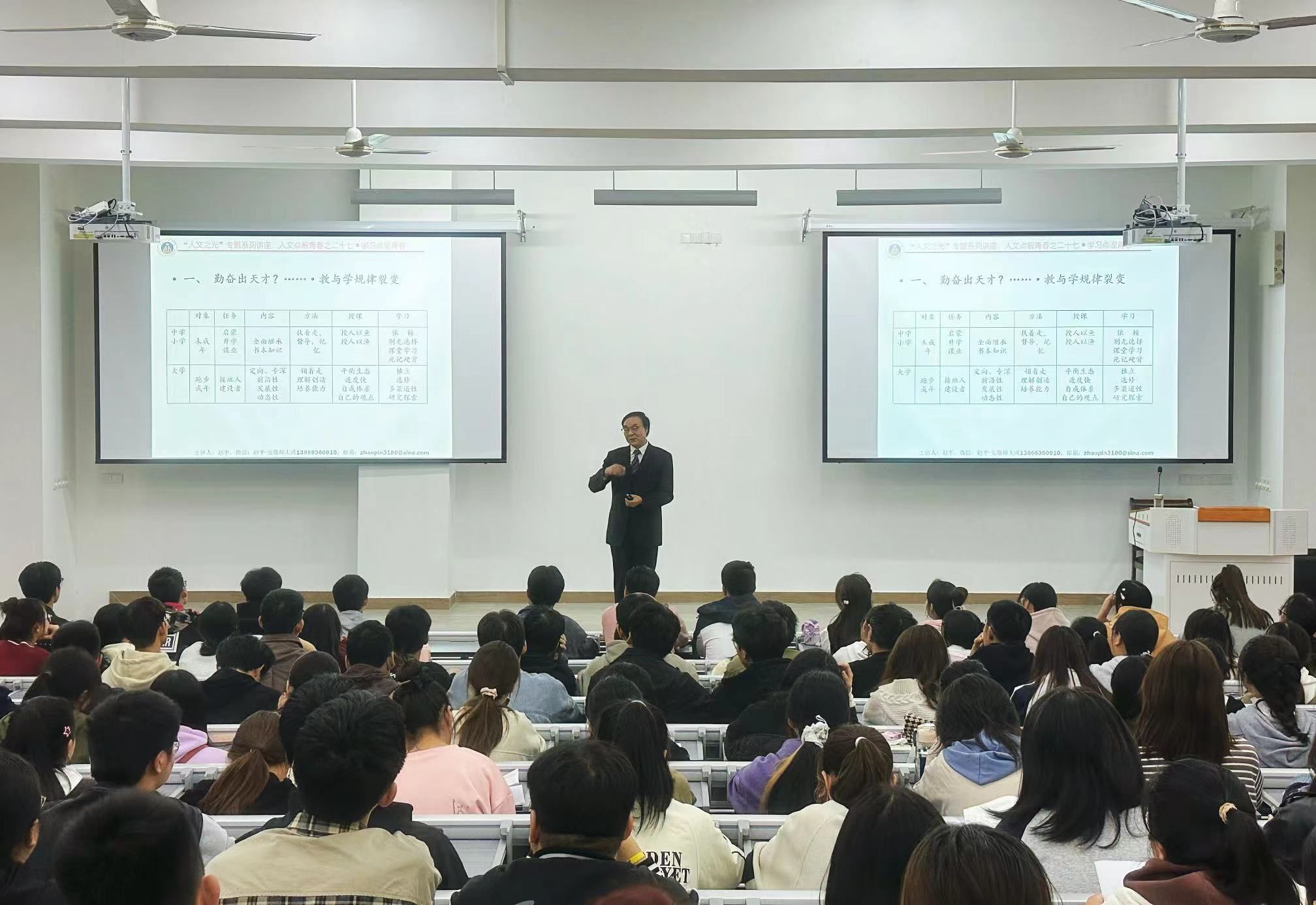 【本网讯】2023年11月9日,教学楼5A208座无虚席,安徽师范大学皖江学院思想政治理论教研部“人文之光论坛”邀请博士生导师赵平教授给新生演绎《大一一起问元芳…… · 大学到底肿么学?》。