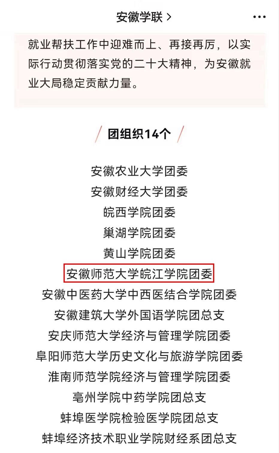 院团委入选安徽共青团促进大学生就业行动工作典型经验做法团组织名单
