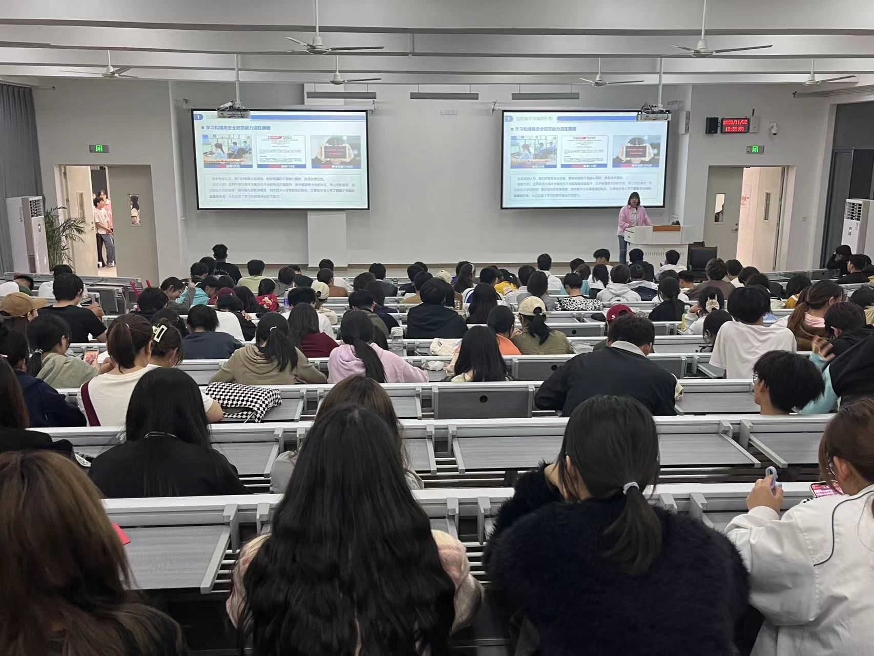 针对疾病防御,要求同学们从每日健康监测、保持宿舍教室整洁卫生、树立健康意识三方面来预防疾病保持自身健康。关于寝室消防安全,重申了寝室消防安全的重要性,明确要求严格遵守寝室管理规定,重点强调了有关违章电器的规定以及相应的消防安全知识,提高同学们的防范意识。校园安全是健康成长、全面发展的前提和保障,针对校园安全,着重强调了事关出行安全的相关事宜,同时要求同学们在校园内严格遵守校规校纪,一切以安全为主。