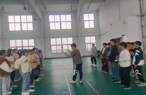 课堂上,孙老师通过示范配合讲解的教学方式向学生介绍羽毛球的场地和器材并学习羽毛球的握拍。通过学习,使学生掌握正、反手握拍法、接发羽毛球技术及正手击高远球技术,孙老师采用分组教学的方法,让同学们两两分组练习,进行合作式教学,锻炼学生的柔韧性和灵活性,同时也便于指导每一位学生的动作,师生积极互动,培养了学生对羽毛球运动的兴趣和爱好。