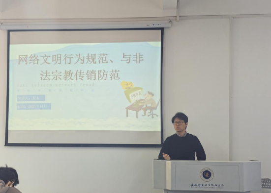 辅导员老师向同学们介绍了近期网络安全问题的严重性,让大家认识到网络安全对每个人的重要性。随后,分享了一些网络安全的案例,引导同学们深入思考网络中的陷阱与挑战,介绍了网络犯罪的常见手段以及如何防范和避免网络攻击,并提醒大家网络安全问题不容忽视,加深了他们对网络安全知识的理解和掌握。最后,辅导员老师强调了网络安全教育的重要性,并建议同学们在日常生活中要自觉遵守网络安全规定,远离网络诈骗和不良信息。还鼓励同学们积极主动地参与到推广网络安全知识的行动中,共同营造一个安全、和谐的网络环境。