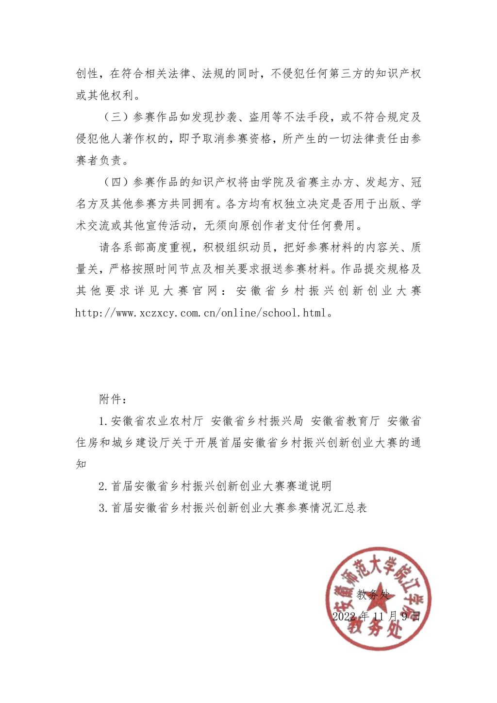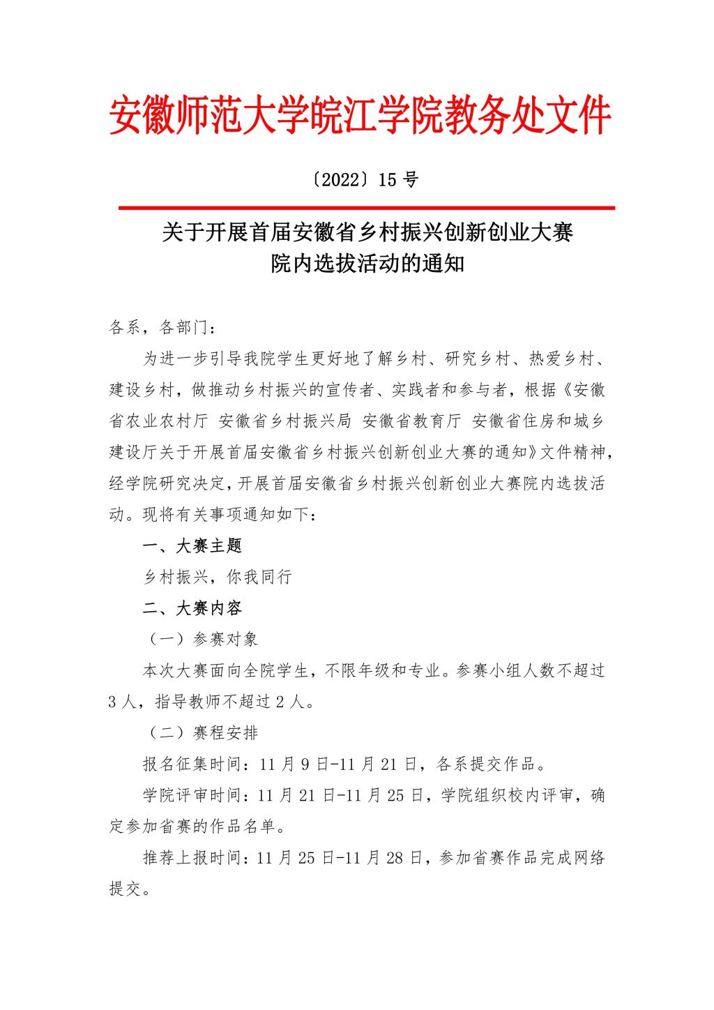 > 关于开展首届安徽省乡村振兴创新创业大赛院内选拔活动的通知