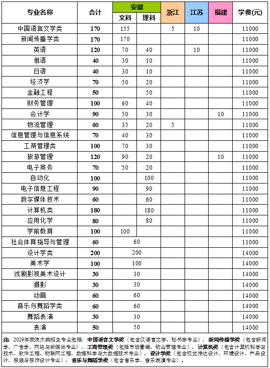 > 2019年分省分专业招生计划及学费标准